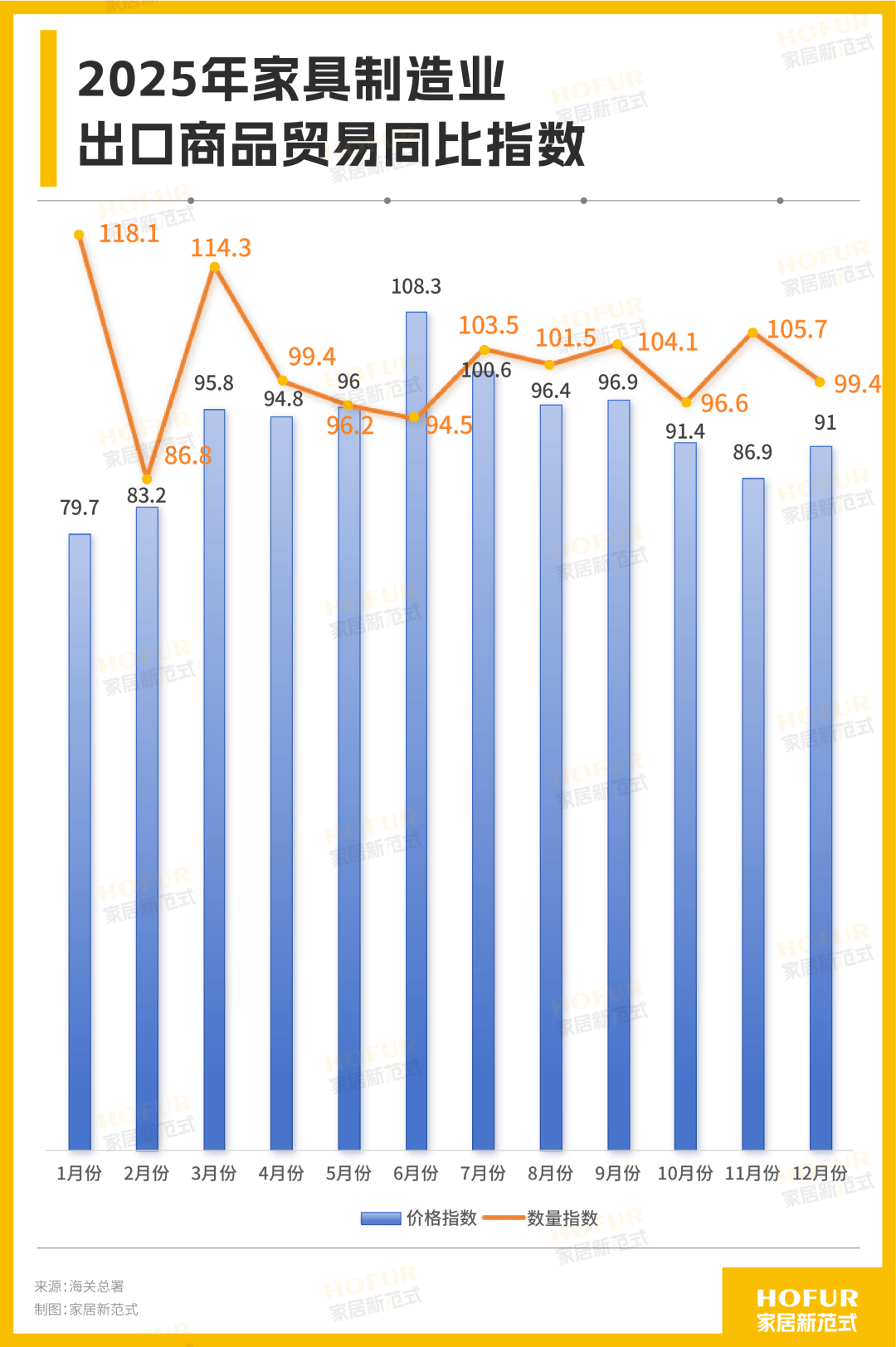 而从全球来看,关税的不确定性、海运资源紧张,叠加铜价等原材料和人工成本上升,迫使整个家具行业的利润不断摊薄。海关总署数据揭示,2025年家具制造业出口商品贸易同比指数里,月均数量指数为101.3,价格指数却仅为93.4 ——类似“量增价却跌”的境况,同样在无数功能雷同、设计近似的餐客厅家具行业间弥漫,破局迫在眉睫。